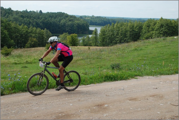 brzegów jezior, szutrowymi drogami, leśnymi brukami, do pokonania są